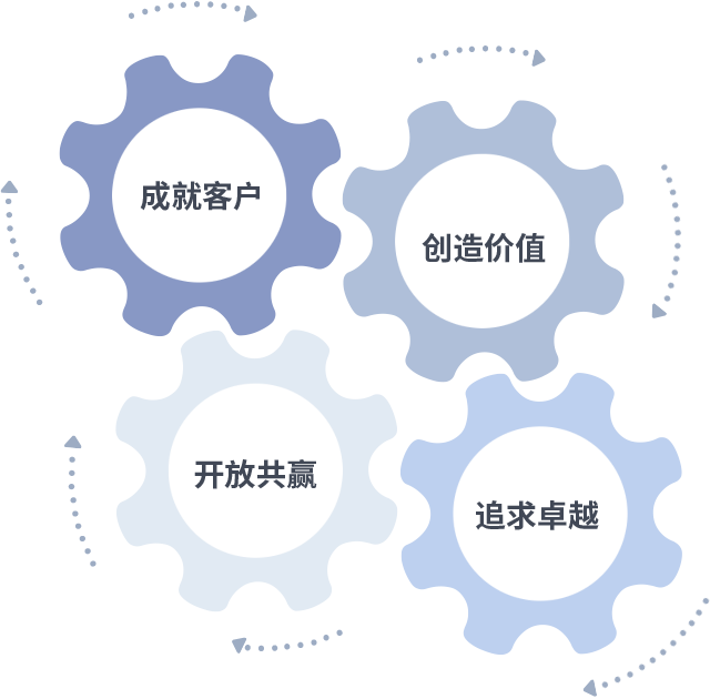 成就客户是一切决策的出发点,创造价值是衡量所有工作的标准,追求卓越是TVT体育 做事做人的态度,开放共赢是TVT体育 的格局也是最终的结果。价值观的齿轮环环相扣,推动着组织里的每个人不断向前。